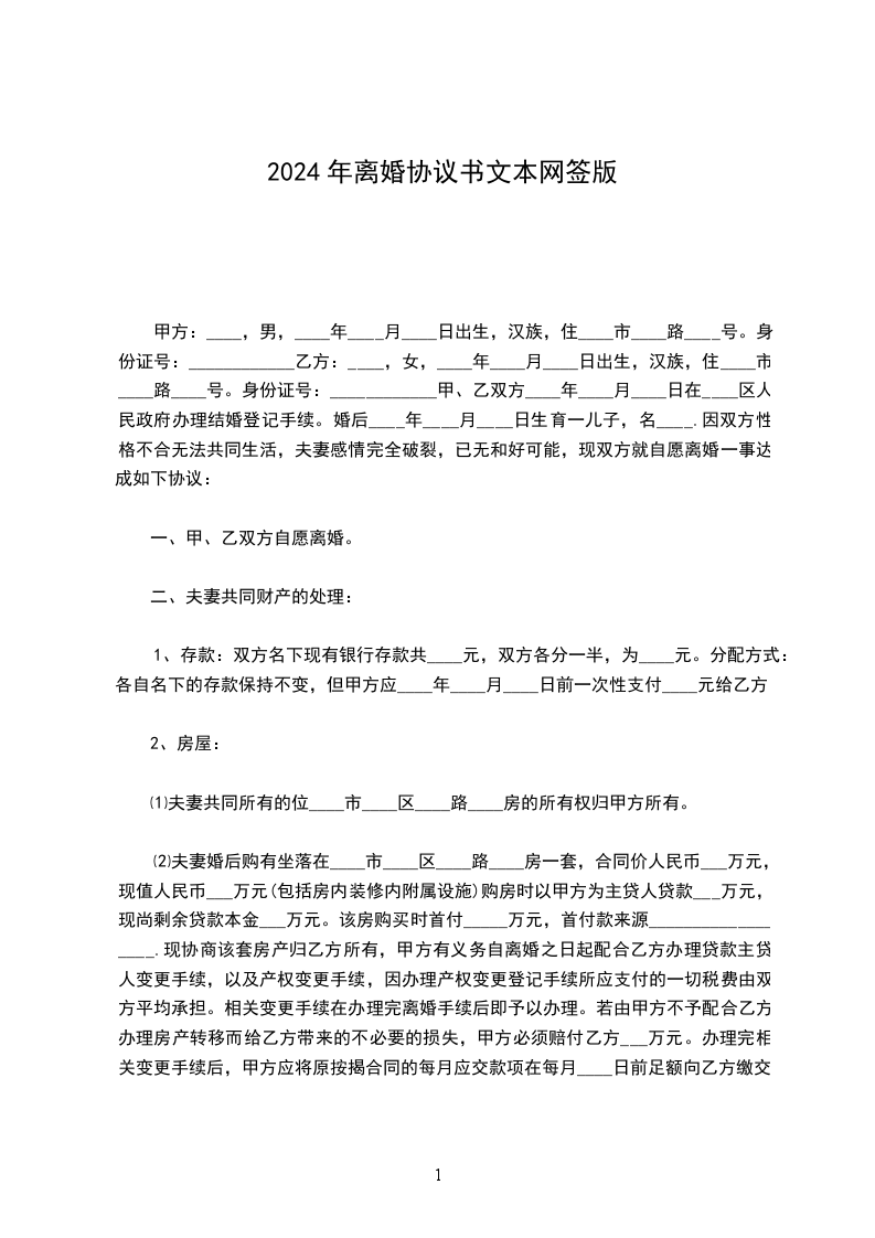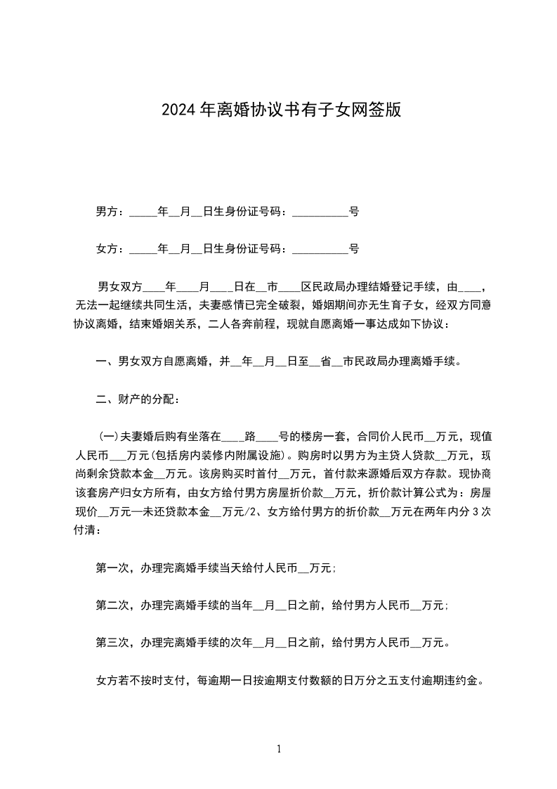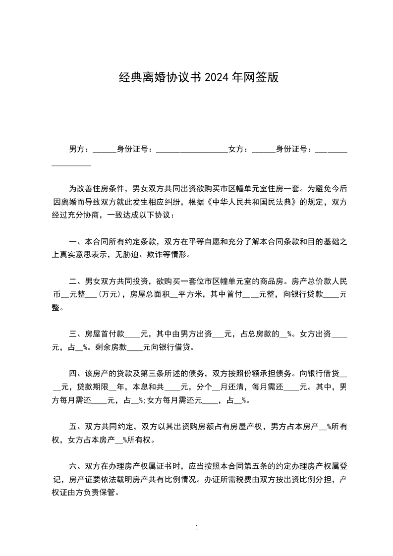 六、本协议书一式三份,由双方各执一份,婚姻登记机关存档一份。男方:(签名)女方:(签名)