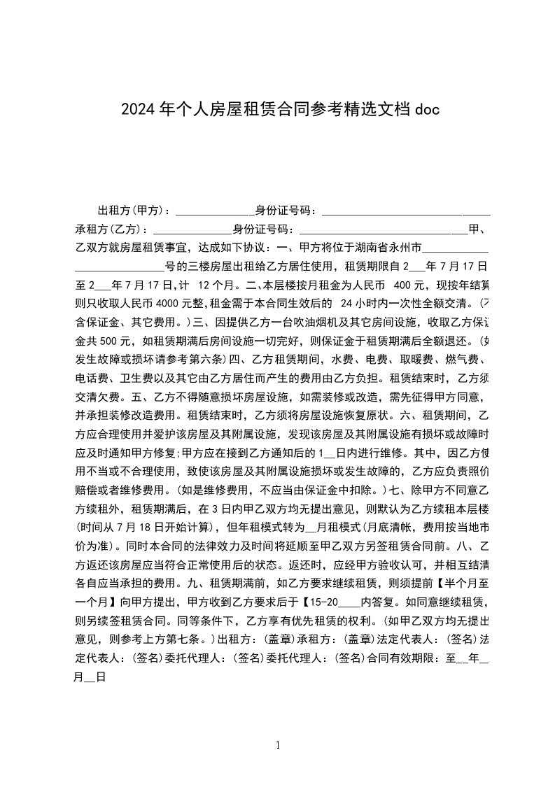 一、甲方将位于湖南省永州市____________________________号的三楼房屋出租给乙方居住使用,租赁期限自2___年7月17日至2___年7月17日,计12个月。