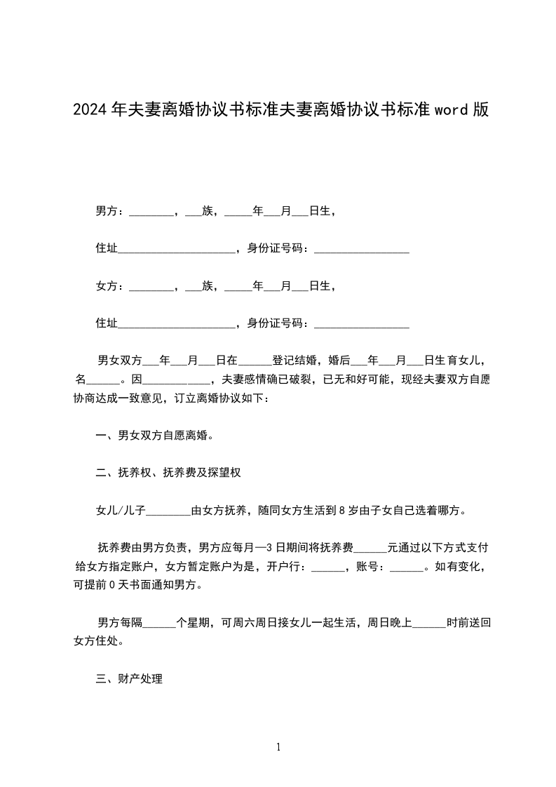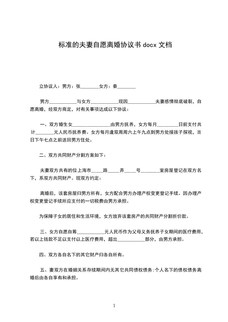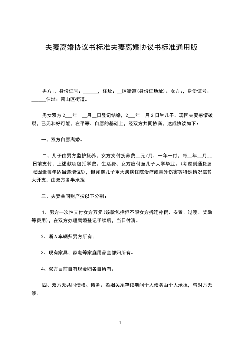 七、本协议书一式三份,甲乙双方各执一份,婚姻登记部门保留一份。在双方签字,并经婚姻登记机关办理相应手续后生效