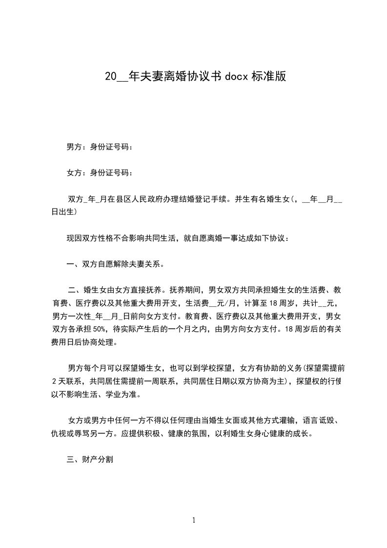 女方:身份证号码: