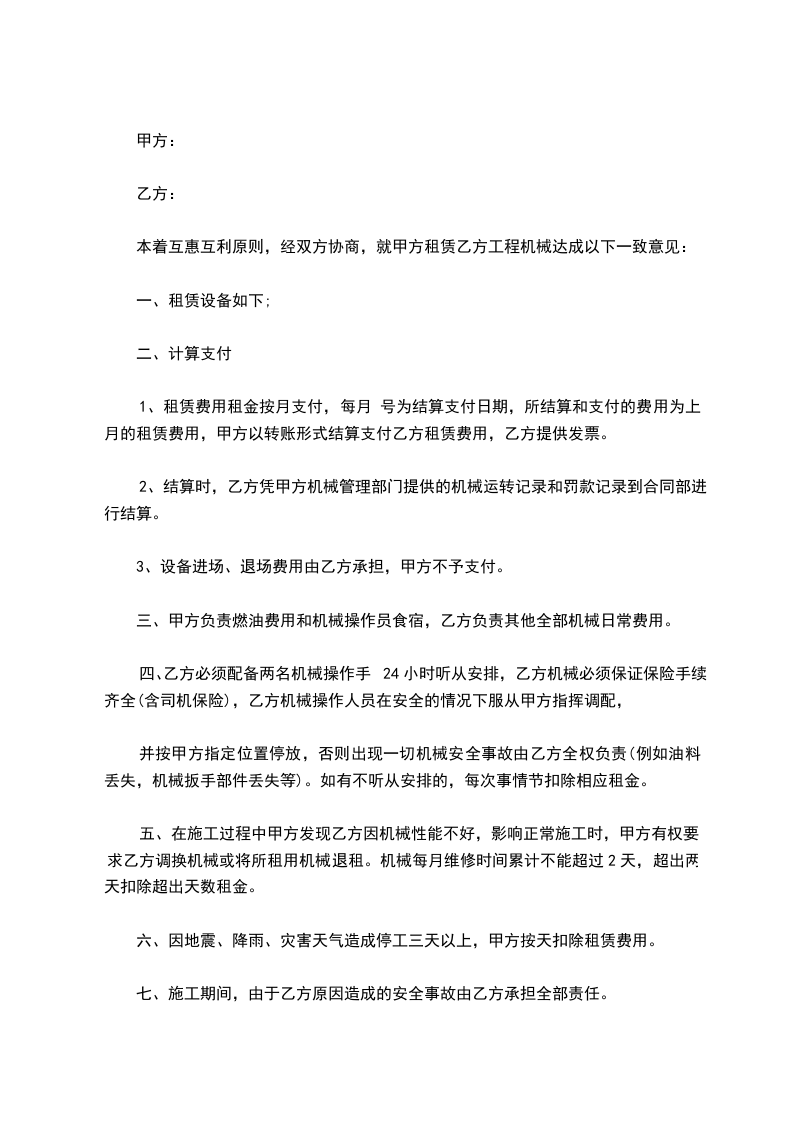 2.给出租方机械操作手提供食宿方便,其费用由出租方承担。
