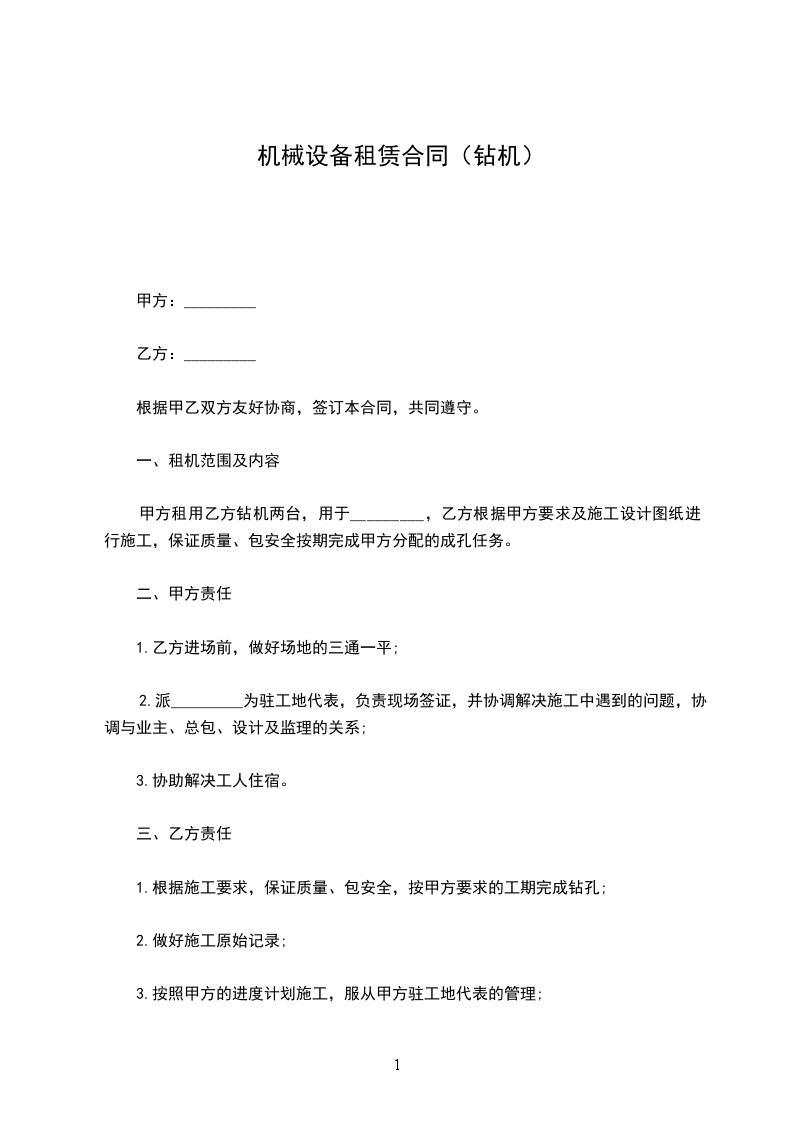 2.乙方全部钻机进场开钻后,甲方按每台钻机_________元支付预付款。
