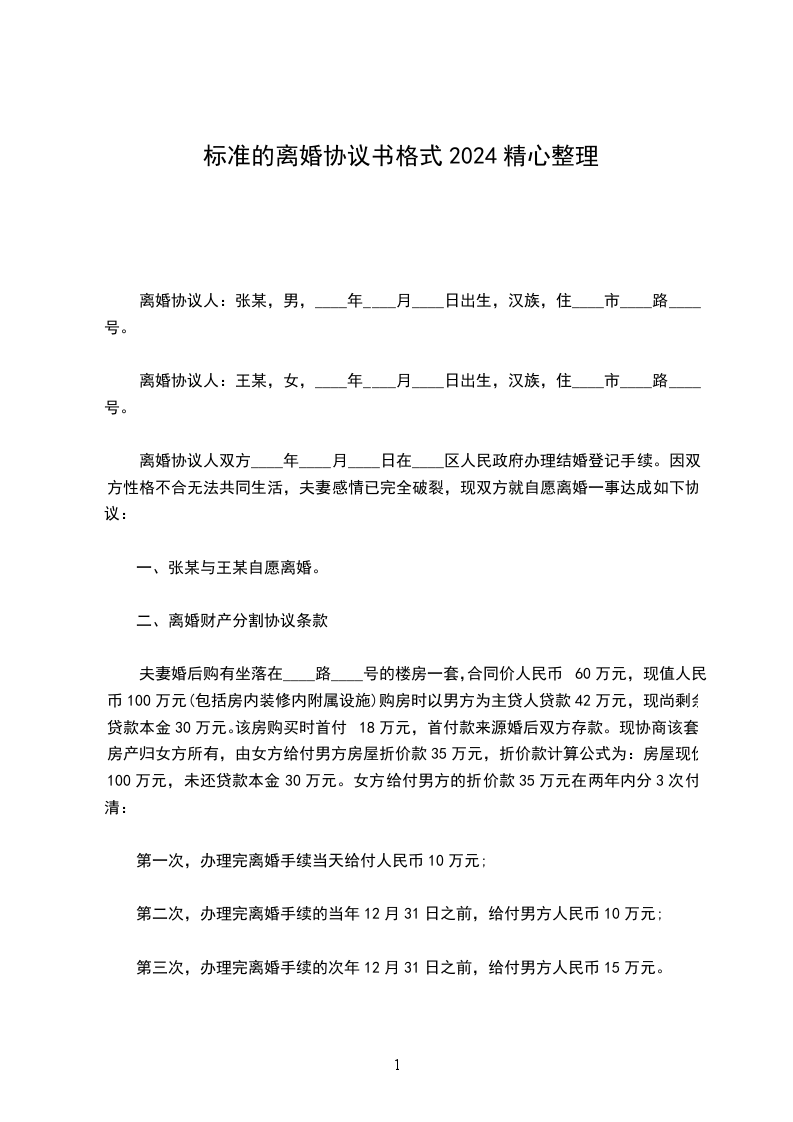 1、存款:双方名下现有银行存款共____元,双方各分一半,为____元。分配方式:各自名下的存款保持不变,但甲方应____年____月____日前一次性支付____元给乙方。