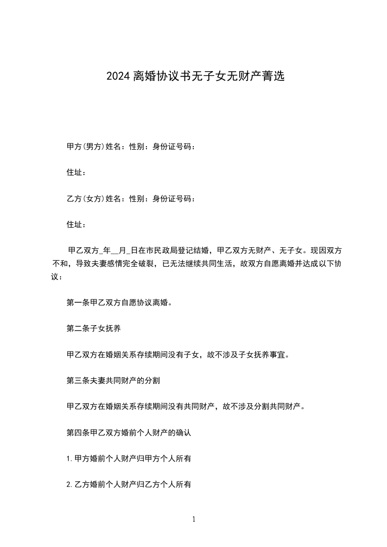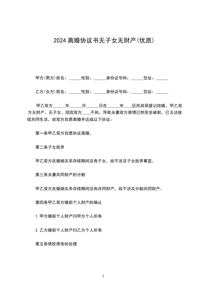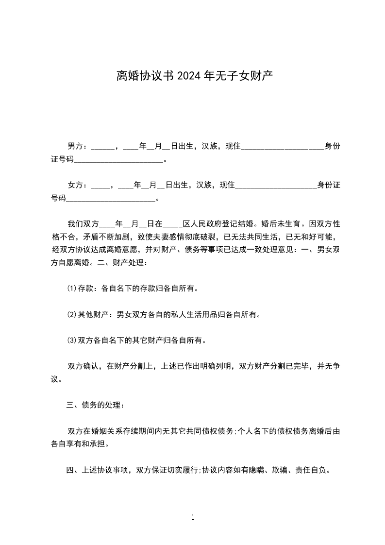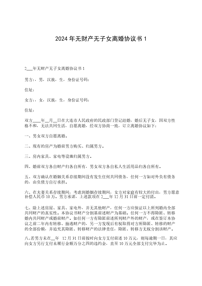 男女双方____年__月__日在区人民政府办理结婚登记手续。因双方性格不合无法共同生活,夫妻感情已完全破裂,现双方就自愿离婚一事达成如下协议: