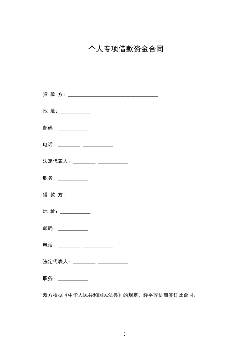 第一条本合同规定年贷款额为人民币(大写)____________万元,用________________.