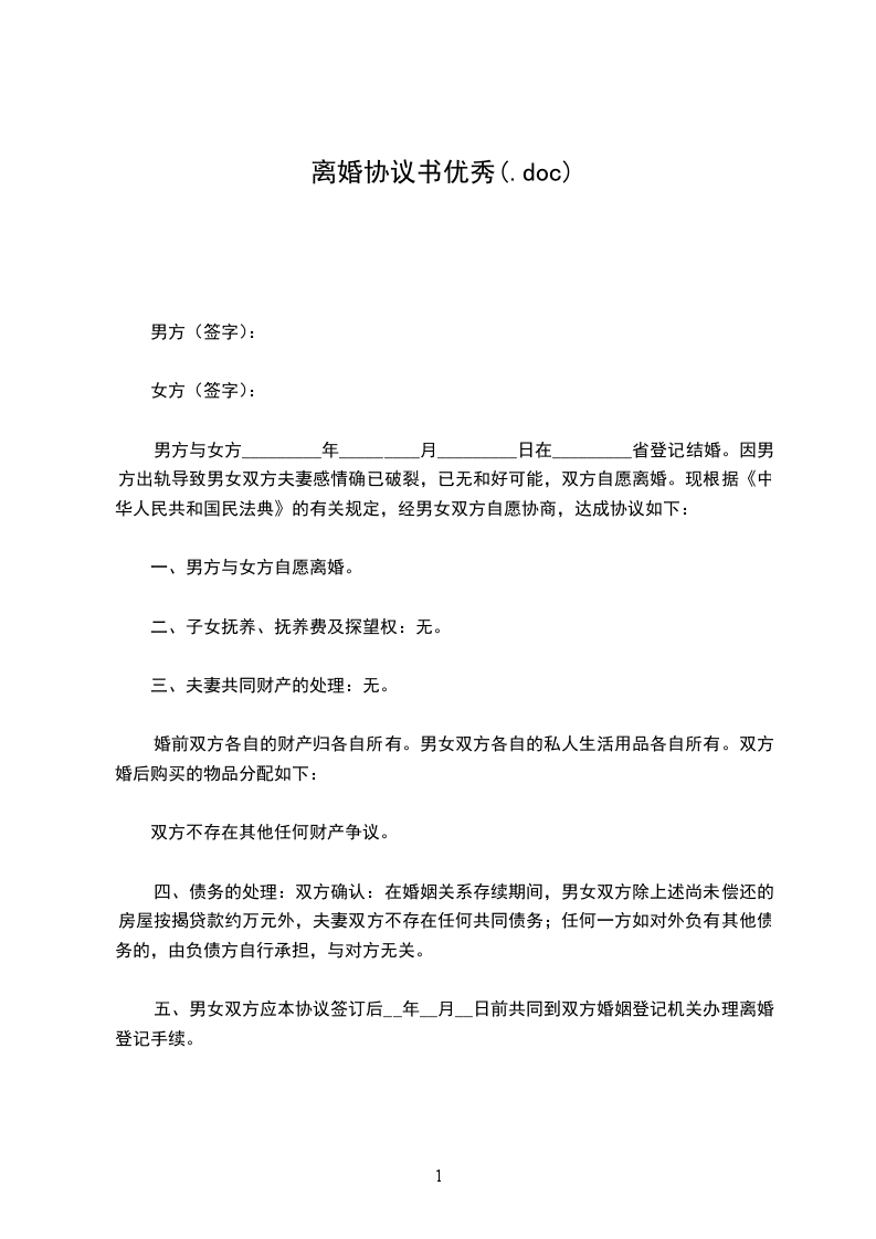 一、男女双方自愿离婚。