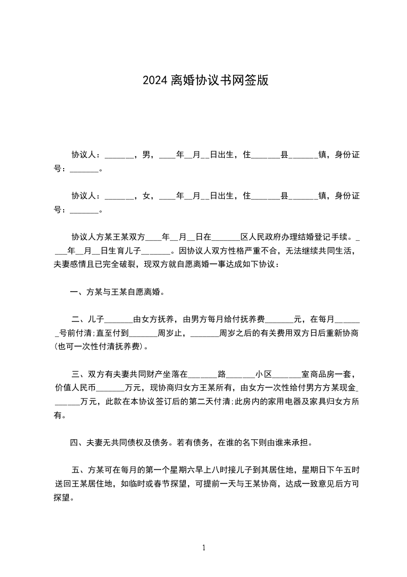 协议人方某王某双方____年__月__日在_______区人民政府办理结婚登记手续。____年__月__日生育儿子_______。因协议人双方性格严重不合,无法继续共同生活,夫妻感情且已完全破裂,现双方就自愿离婚一事达成如下协议: