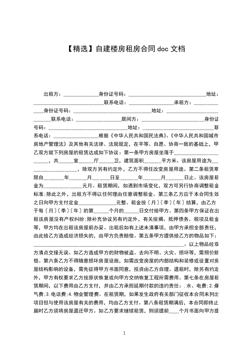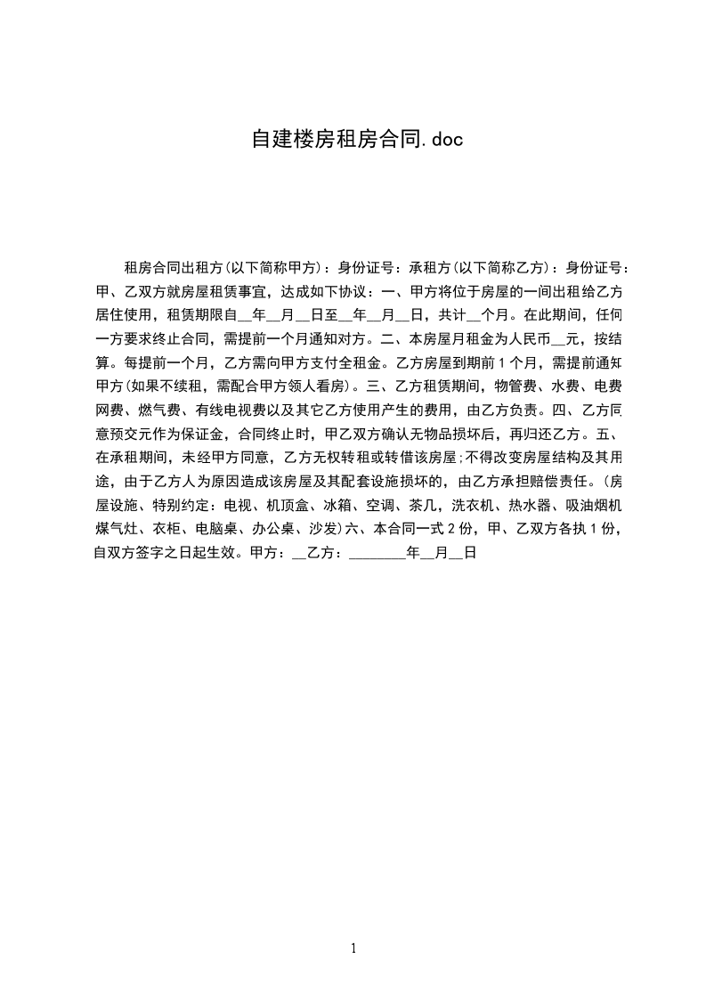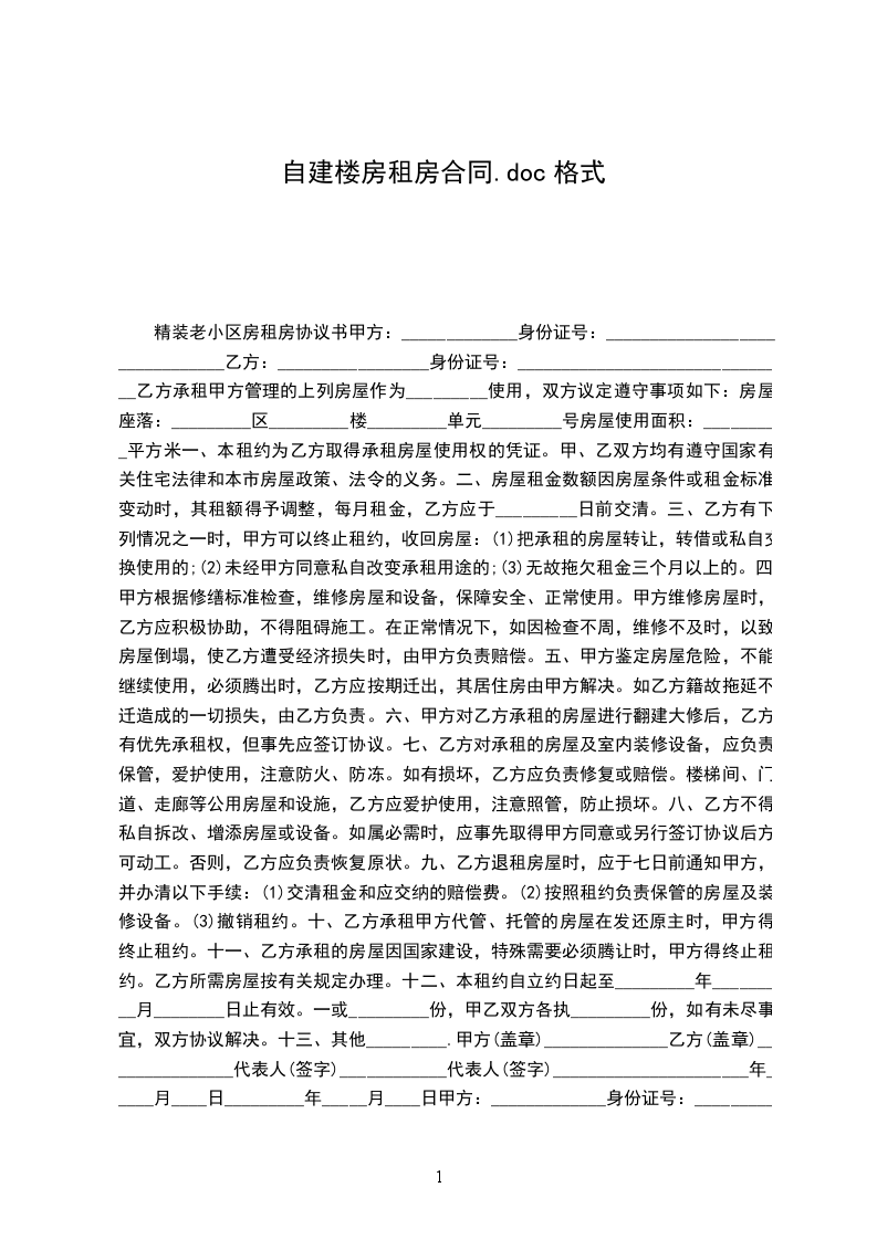 精装老小区房租房协议书