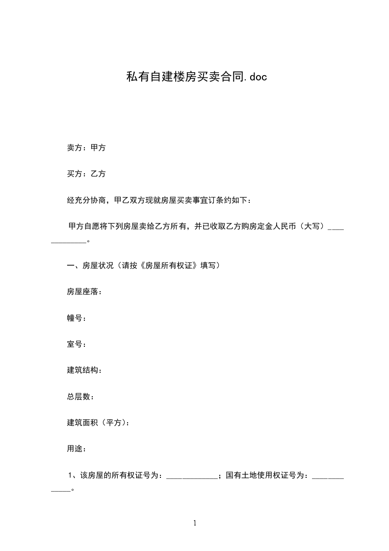 房屋座落:_________区_________楼_________单元_________号房屋使用面积:_________平方米