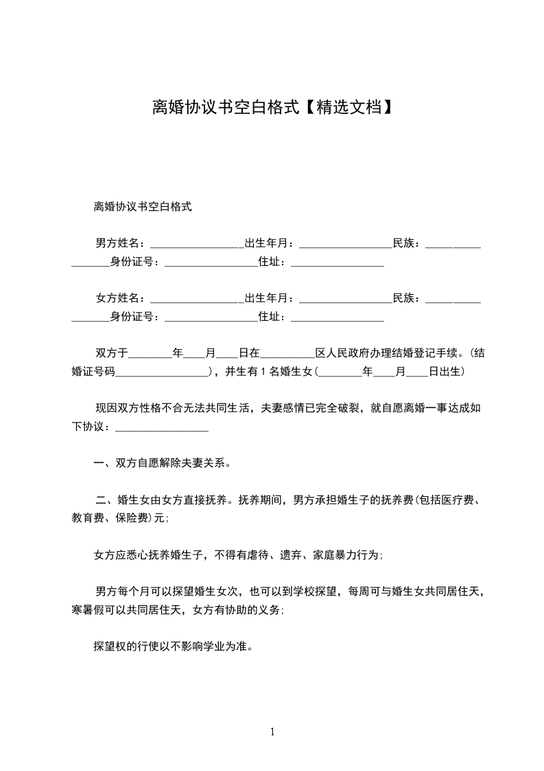本协议一式三份,自颁发《离婚证》之日起生效,男女双方各执一份,婚姻登记机关一份