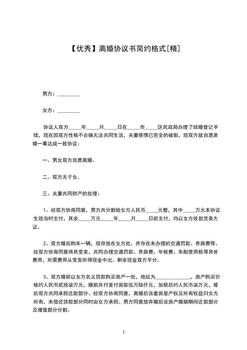 协议人双方_____年_____月_____日在_____市_____区民政局办理了结婚登记手续,现在因双方性格不合确无法共同生活,夫妻感情已完全的破裂,现双方就自愿离婚一事达成一致协议: