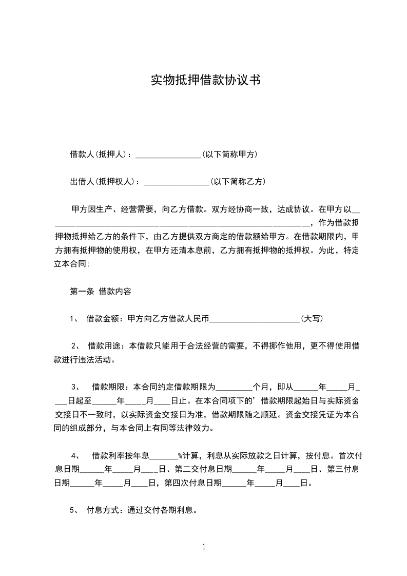四、甲方以(抵押物名称)交乙方作为借款的抵押(抵押物详细清单附后)。抵押物的现值为_______万元,担保_______万元贷款的偿还。