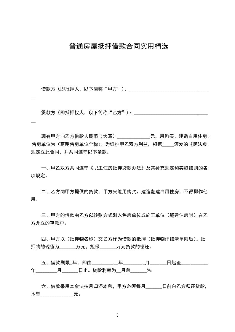 现有甲方向乙方借款人民币(大写)______________元,用购买、建造自用住房。售房单位为(写明售房单位全称)。为维护甲乙双方利益,根据_____颁发的《民法典》规定立此合同,并共同遵守以下条款。