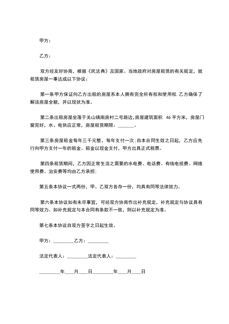 根据《中华人民共和国民法典》及其他相关法律、法规规定,甲乙双方在平等、自愿、协商一致的基础上,就下列房屋的租赁达成如下协议: