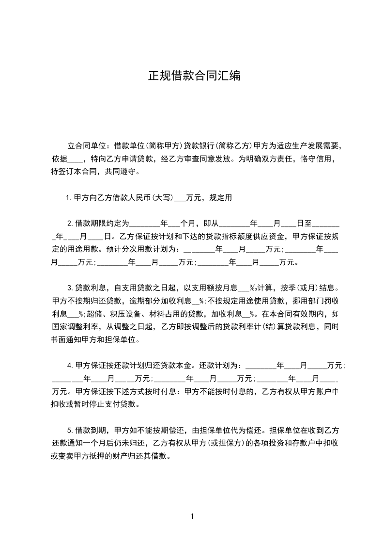 立合同单位:借款单位(简称甲方)贷款银行(简称乙方)甲方为适应生产发展需要,依据____,特向乙方申请贷款,经乙方审查同意发放。为明确双方责任,恪守信用,特签订本合同,共同遵守。
