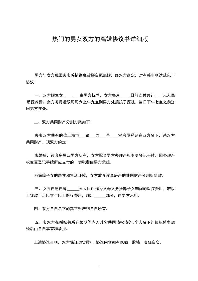 夫妻双方共有的位上海市___路___弄___号____室房屋登记在双方名下,系双方共同财产。现双方约定: