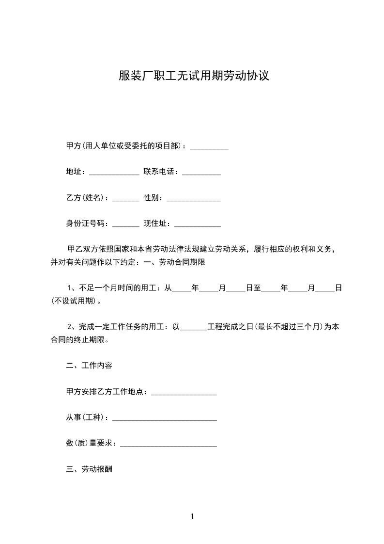 一、乙方的岗位(工种)为:_______________________