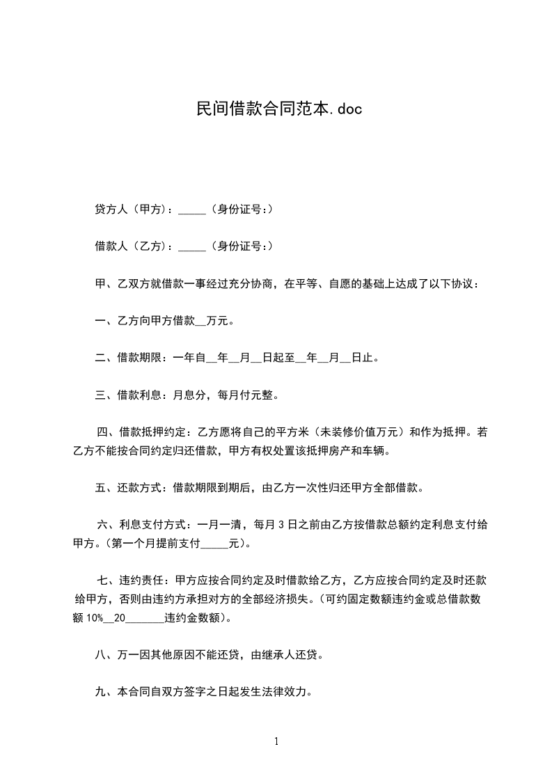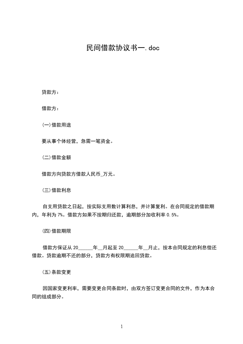 借款方向贷款方借款人民币_万元。