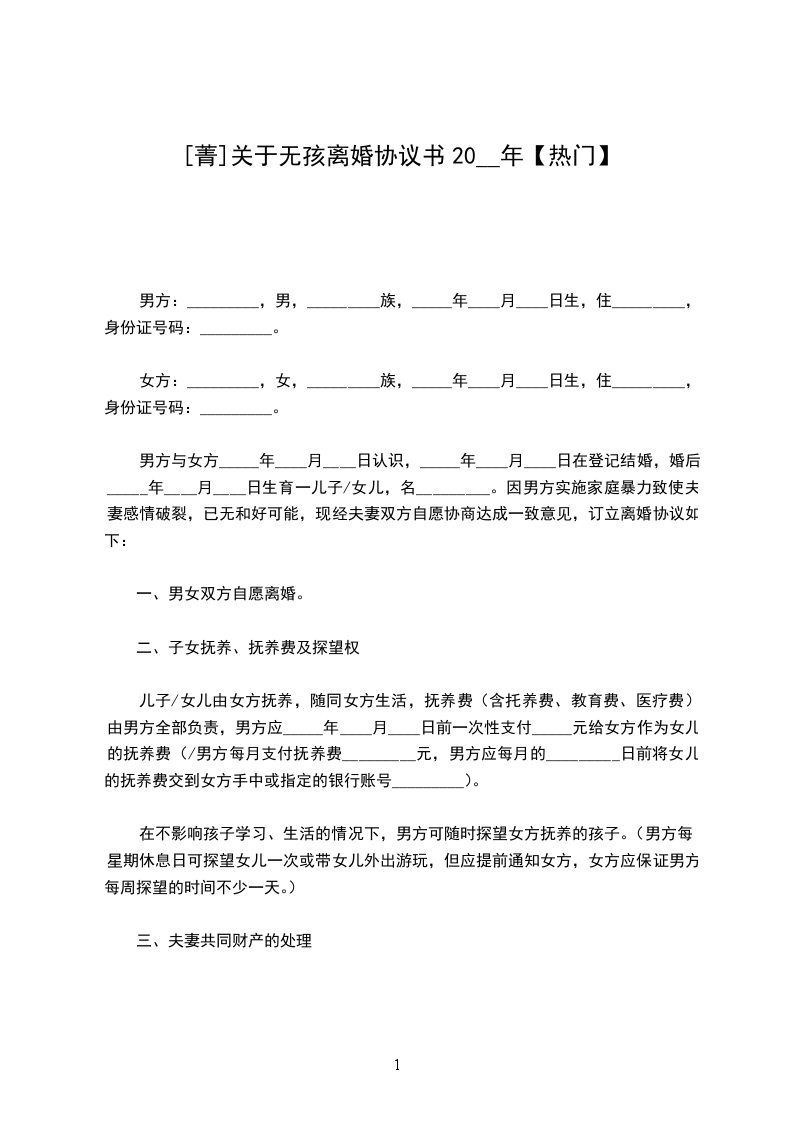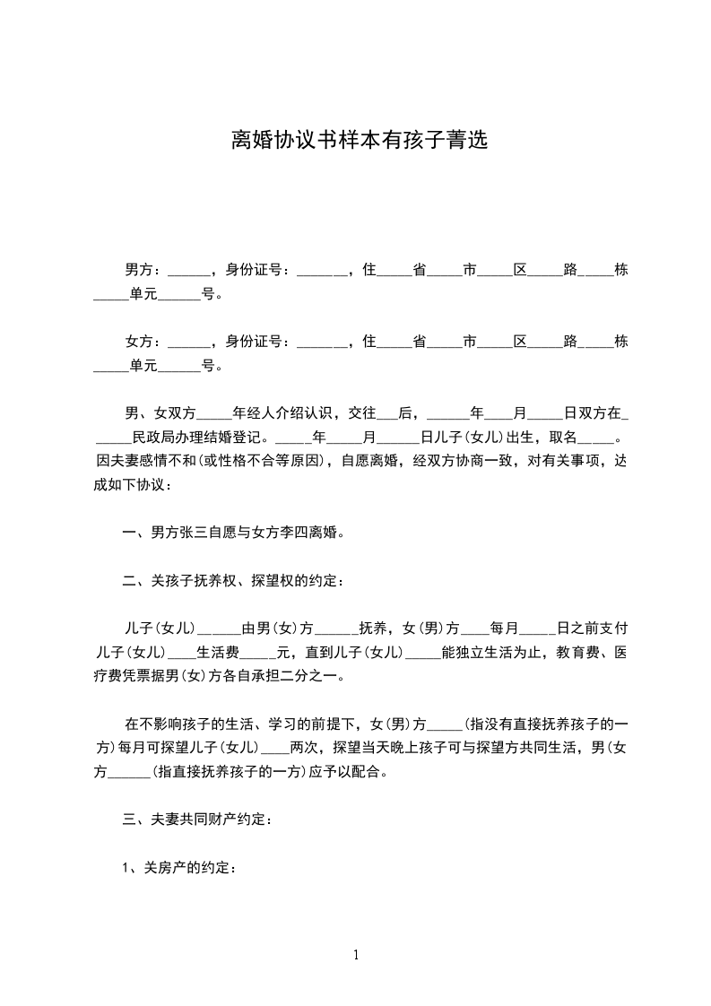 双方____年__月认识,____年__月__日在____登记结婚,婚后____年__月__日生育一儿子(女儿),名____。现夫妻感情已经完全破裂,没有和好可能,经双方协商达成一致意见,订立离婚协议如下: