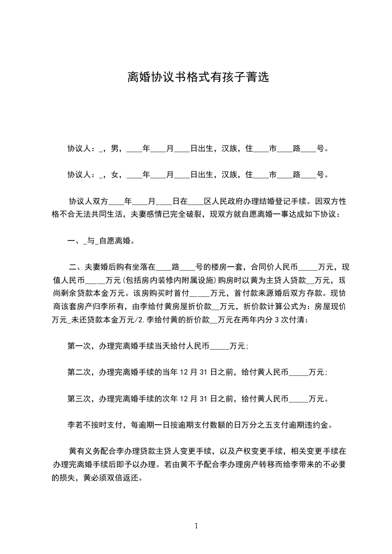 本协议一式三份,男、女双方各执一份,婚姻登记机关存档一份,此时自婚姻登记机颁发《离婚证》之日起生效。