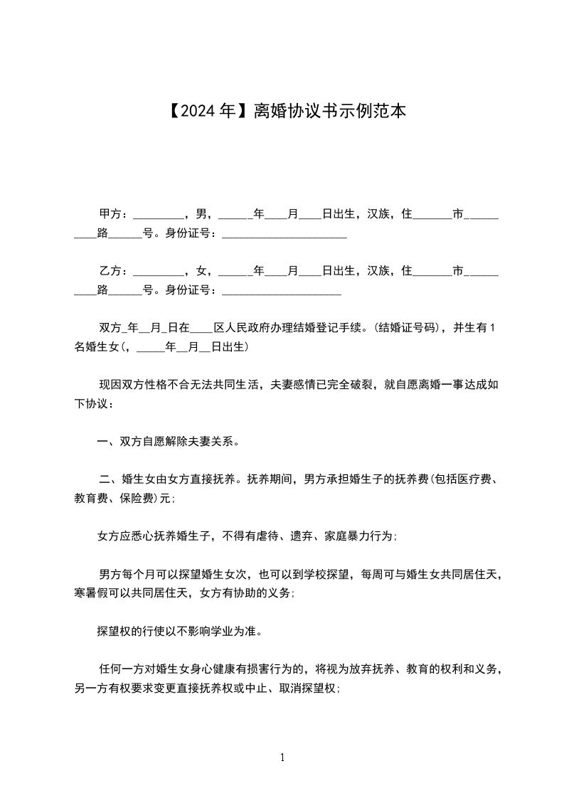 现因双方性格不合无法共同生活,夫妻感情已完全破裂,就自愿离婚一事达成如下协议: