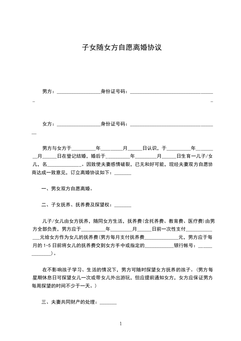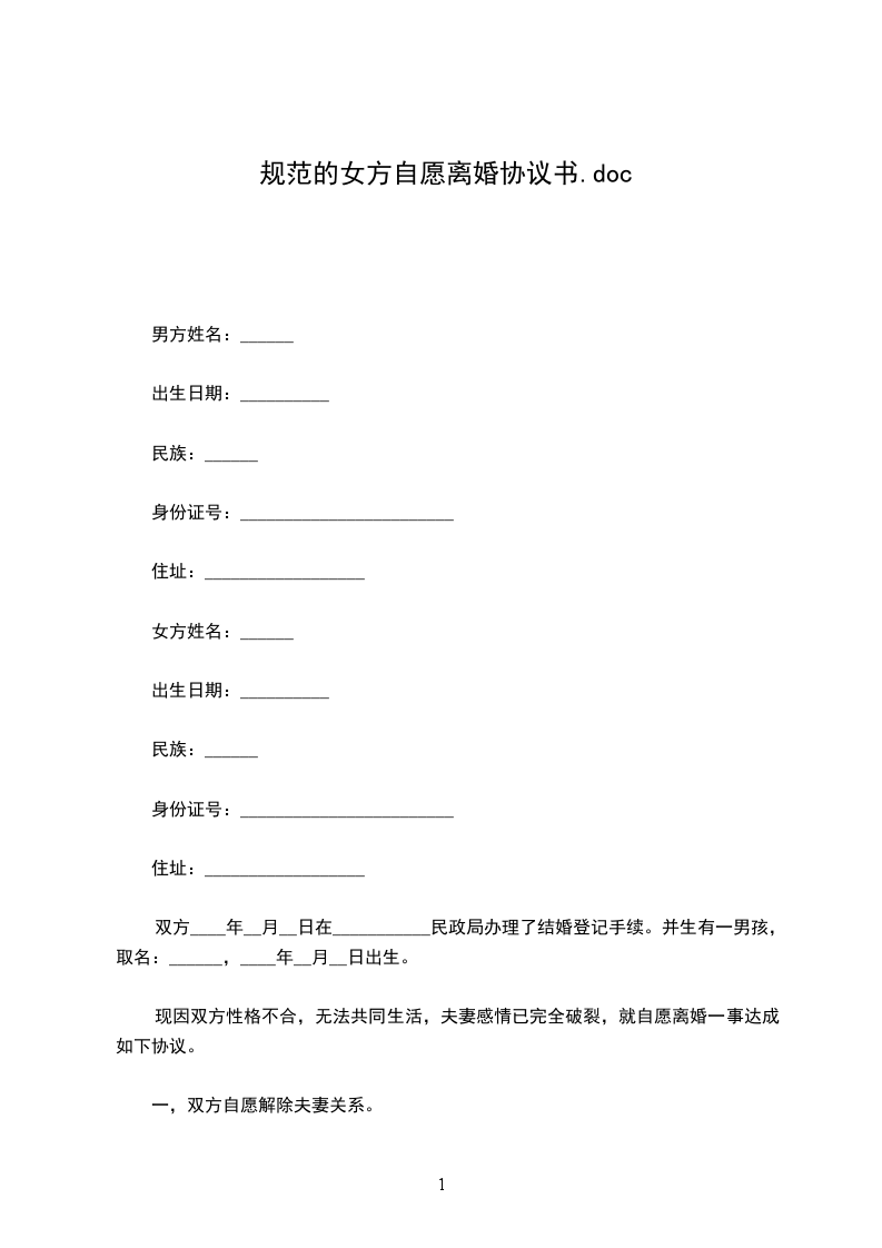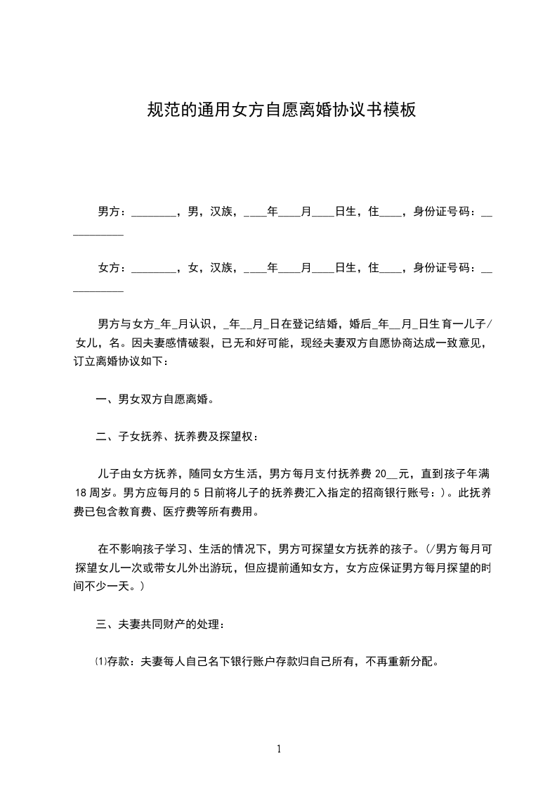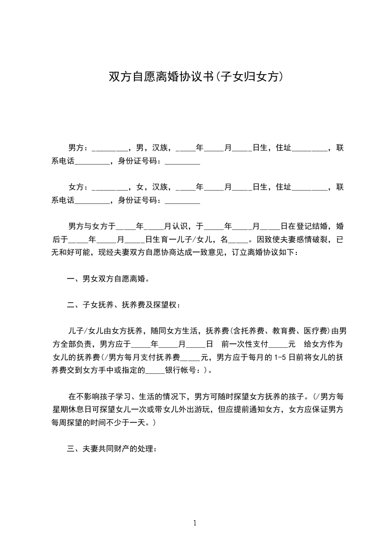 女方:________,女,汉族,____年____月____日生,住____,身份证号码:___________