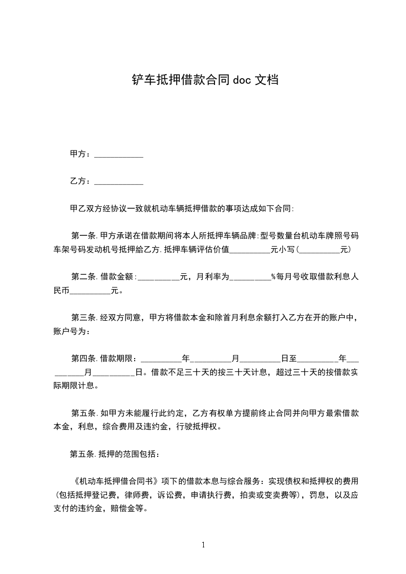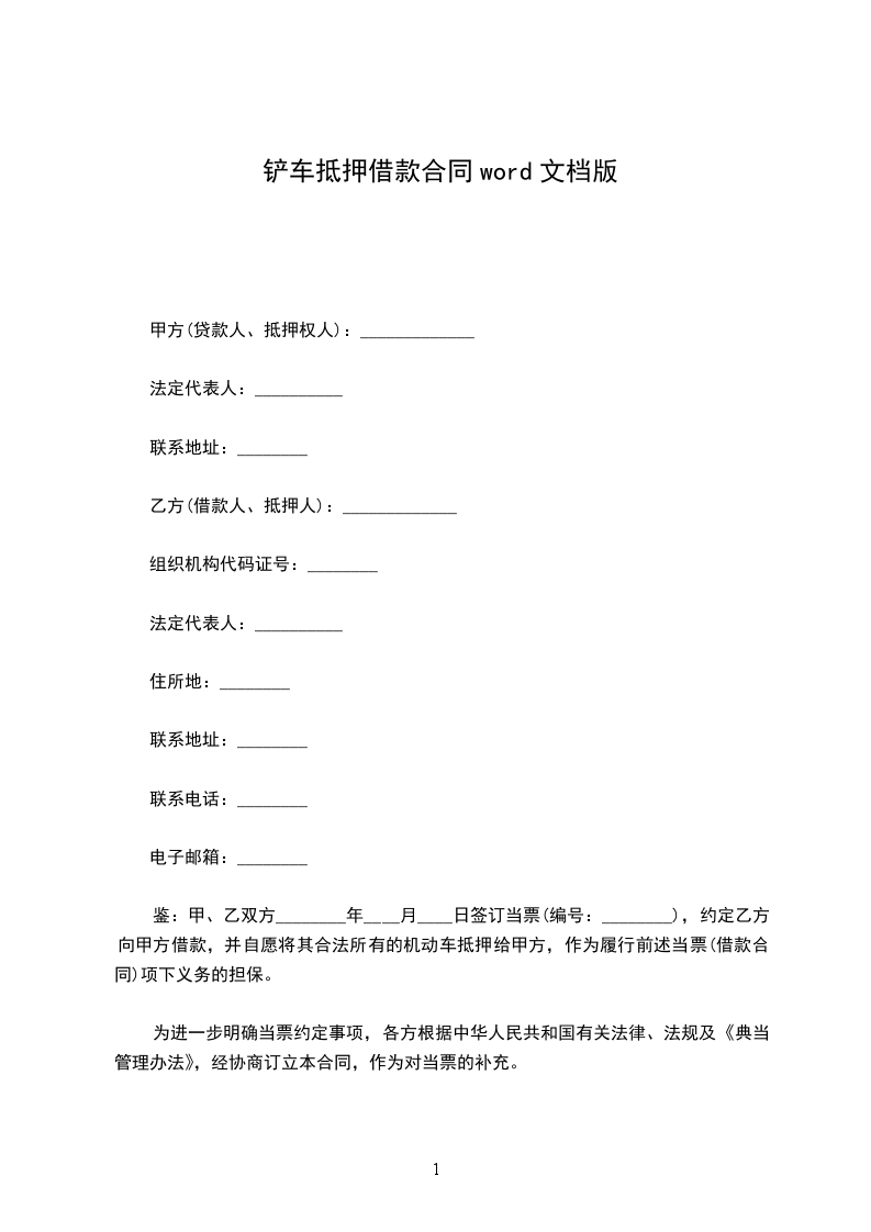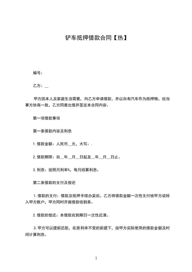 甲方因公司经营需要,以自有车辆作为抵押向乙方借款,借款金额为人民币(大写)(小写),经与乙方协商一致,特订立本抵押合同。
