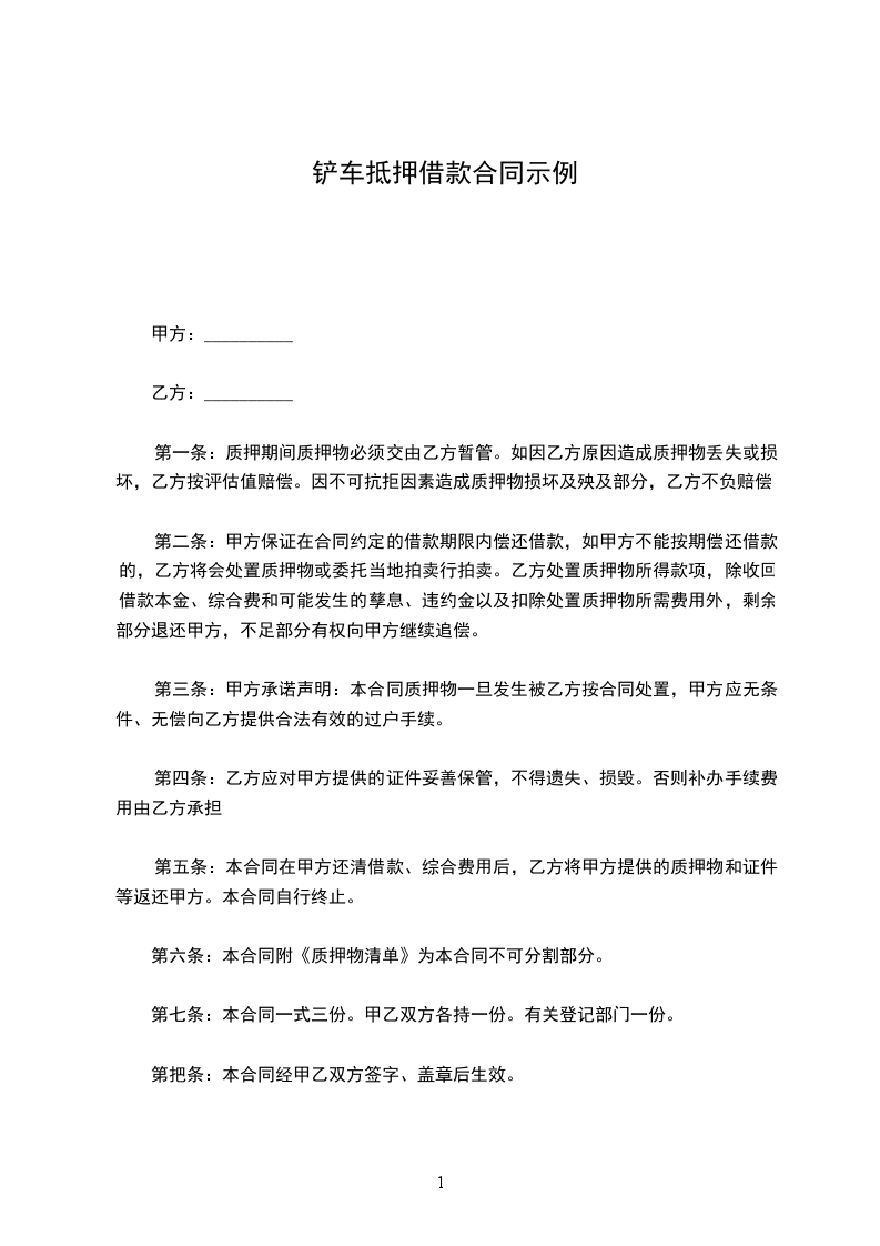 1、清点:本合同生效后,甲、乙双方共同清点检查抵押物的数量、质量。