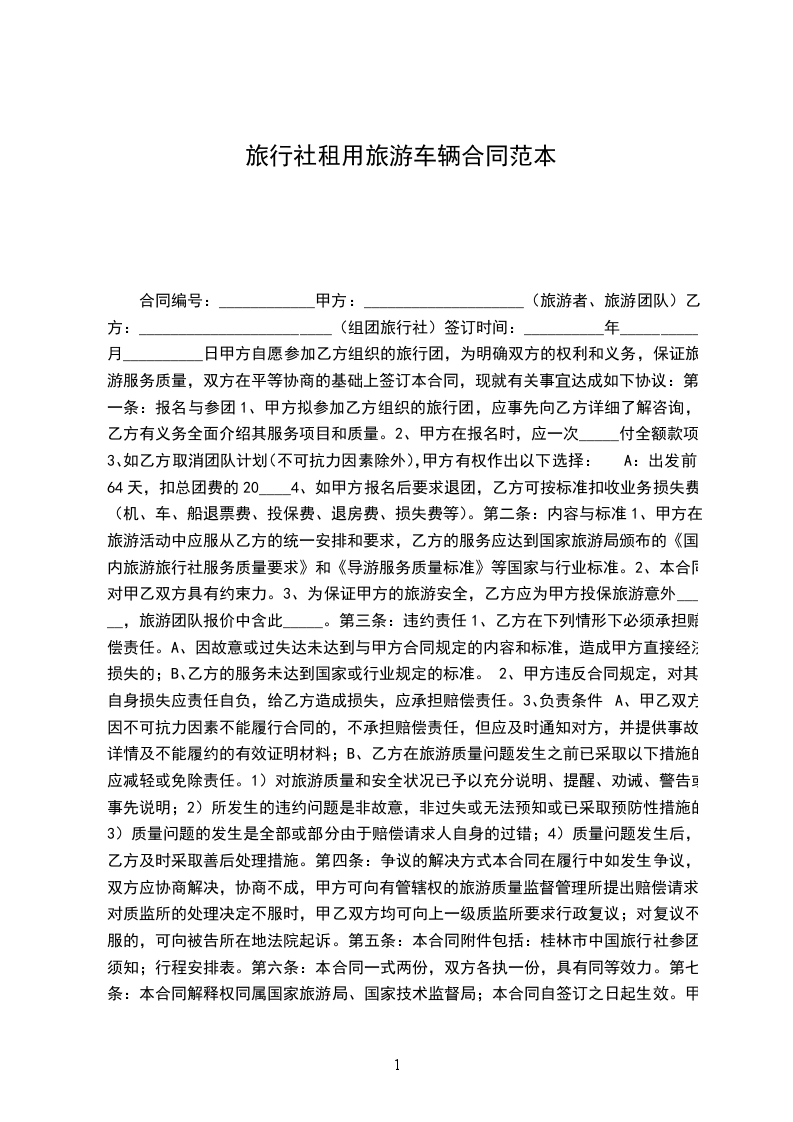 6、 车辆因故障不能完成行程,预计在一个小时内不能排除故障时,乙方应及时另派车辆接送游客,必要时由旅行社自行安排,费用由乙方承担。