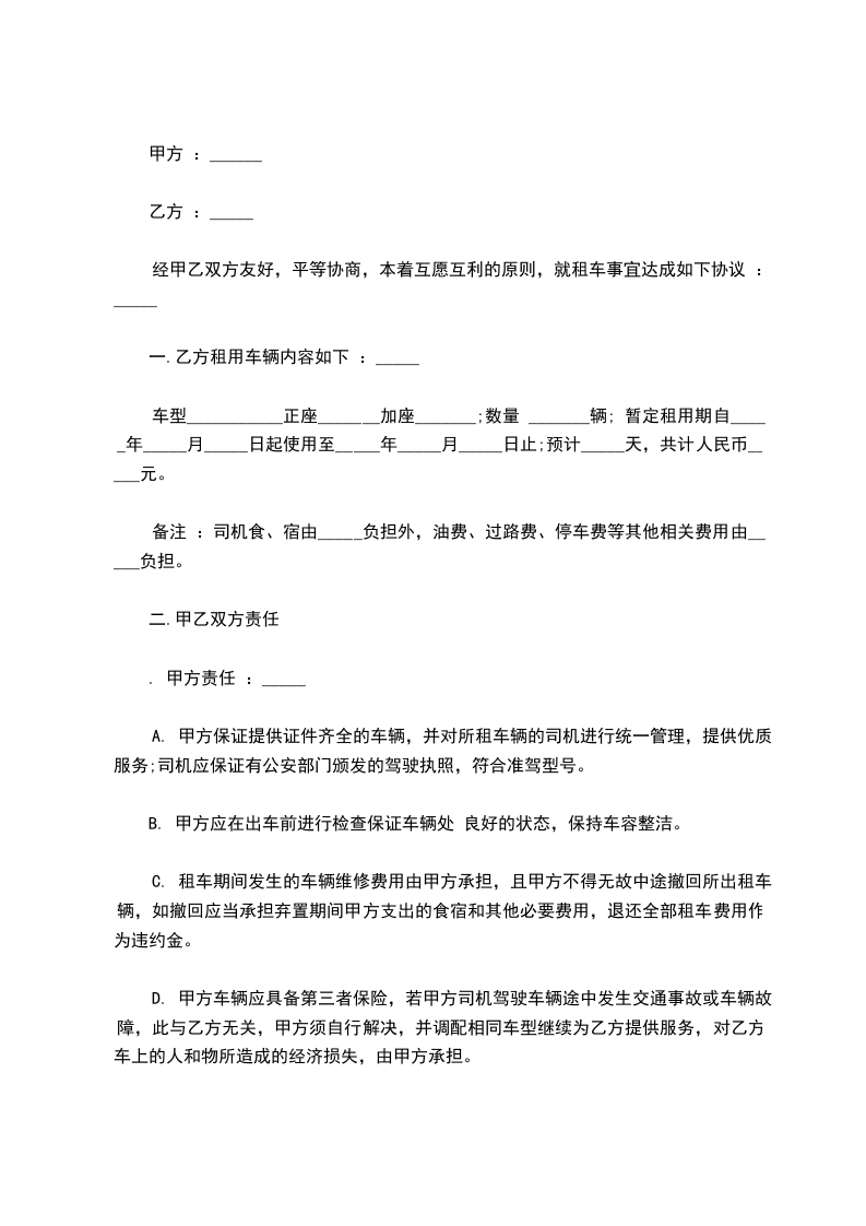 1、 乙方根据甲方的要求合理调度车辆,并保作好相应的出车准备,保证准时到达甲方指定地点。