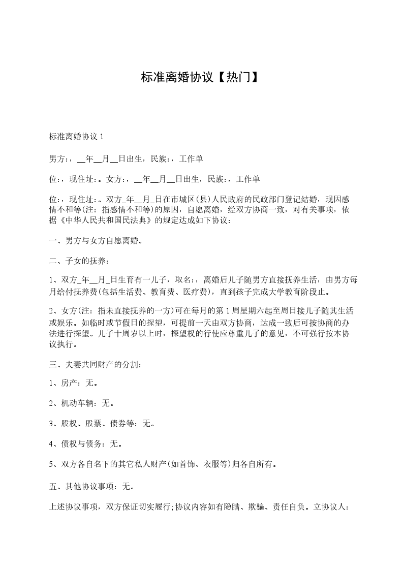 一、《离婚协议书》