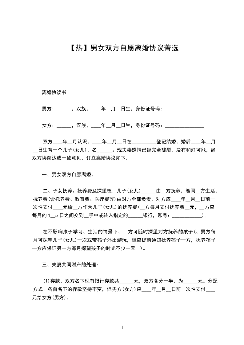 男女离婚协议书__,男,出生__年__月__日、韩、__市___公司的员工,住___市数目的房间______路