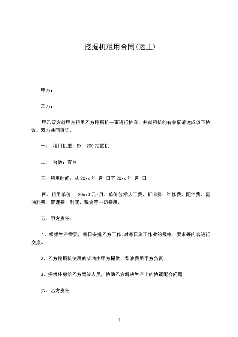 四、租用单价: 20xx0元/月。单价包括人工费、折旧费、维修费、配件费、副油料费、管理费、利润、税金等一切费用。