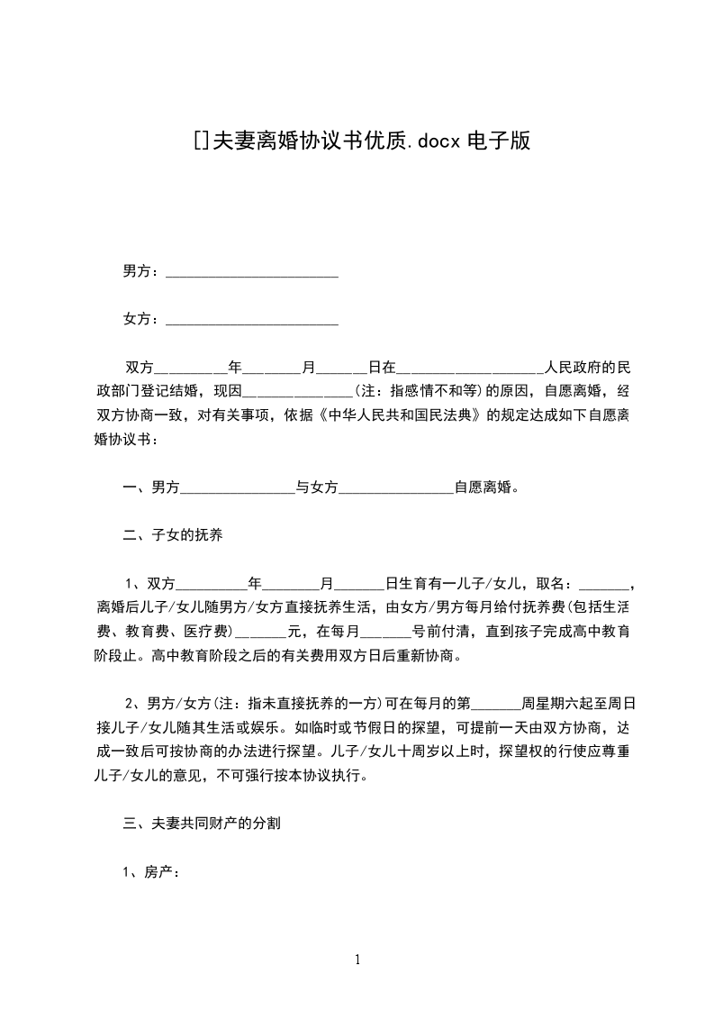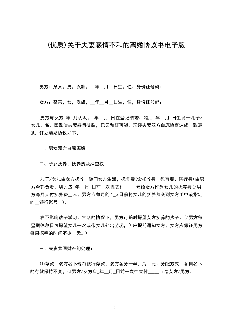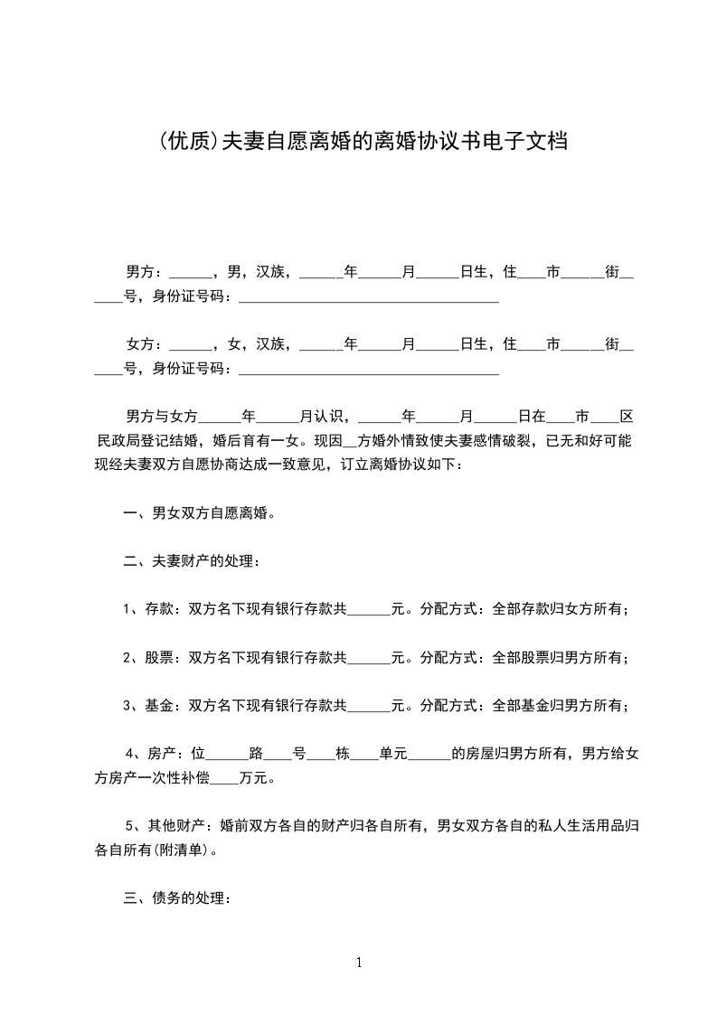 双方__________年________月_______日在____________________人民政府的民政部门登记结婚,现因_______________(注:指感情不和等)的原因,自愿离婚,经双方协商一致,对有关事项,依据《中华人民共和国民法典》的规定达成如下自愿离婚协议书: