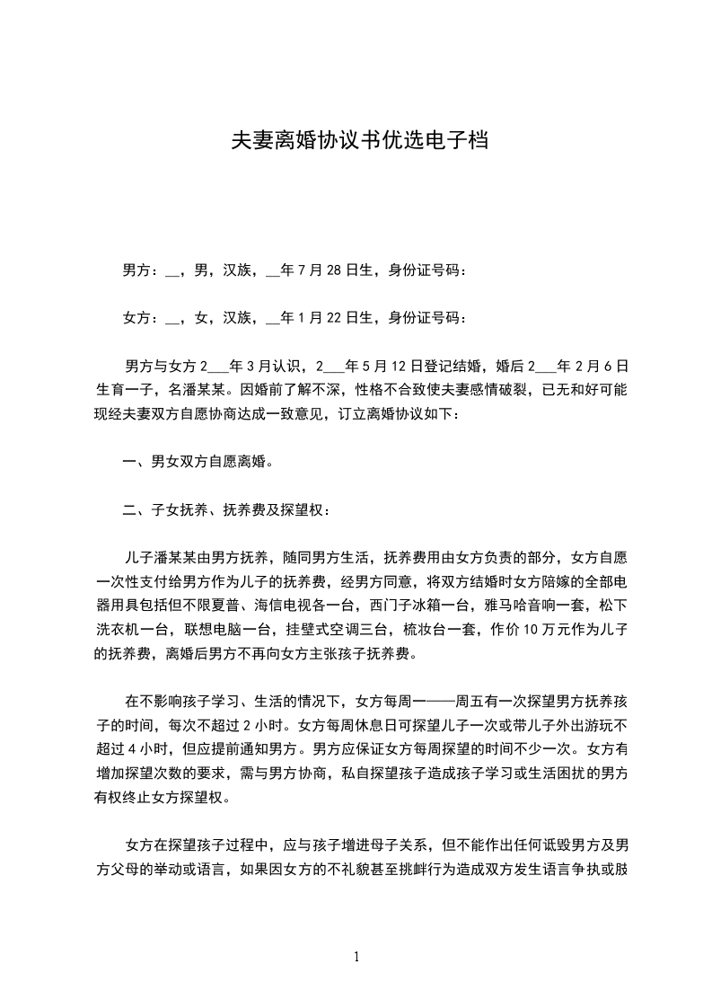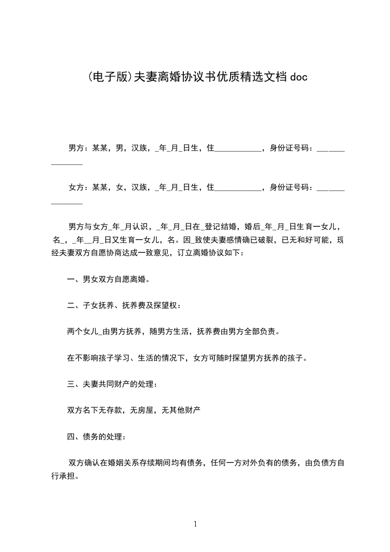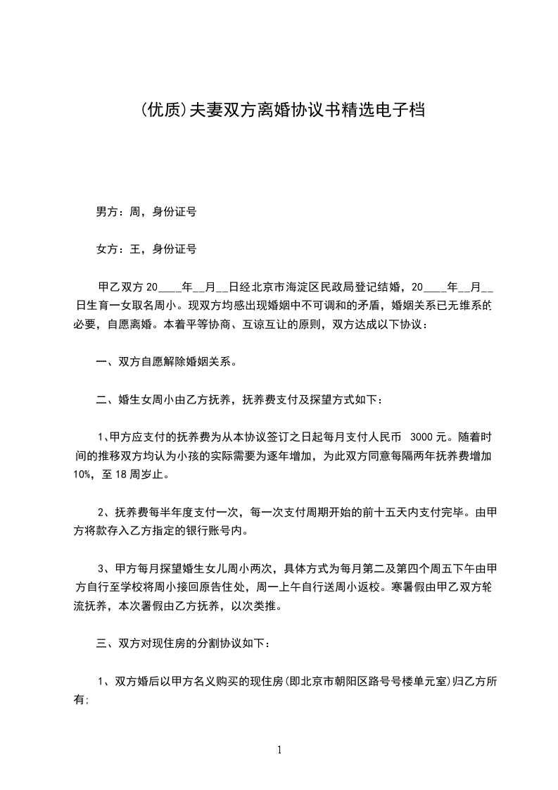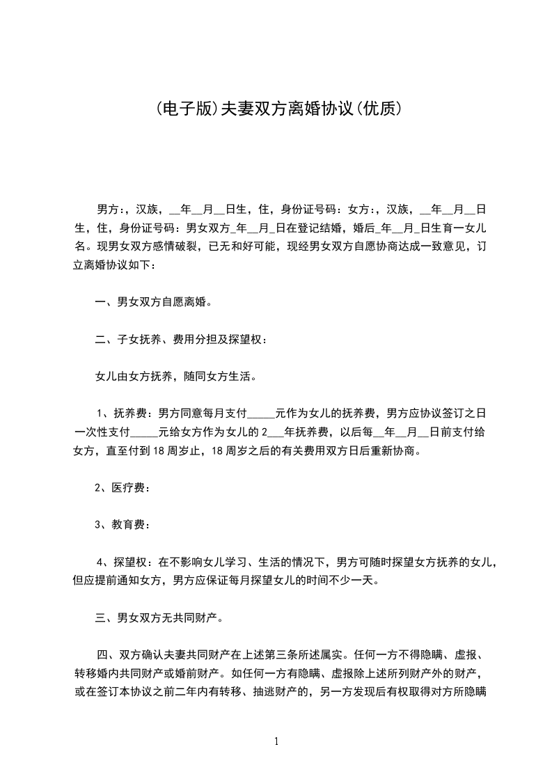 1、双方__________年________月_______日生育有一儿子/女儿,取名:_______,离婚后儿子/女儿随男方/女方直接抚养生活,由女方/男方每月给付抚养费(包括生活费、教育费、医疗费)_______元,在每月_______号前付清,直到孩子完成高中教育阶段止。高中教育阶段之后的有关费用双方日后重新协商。