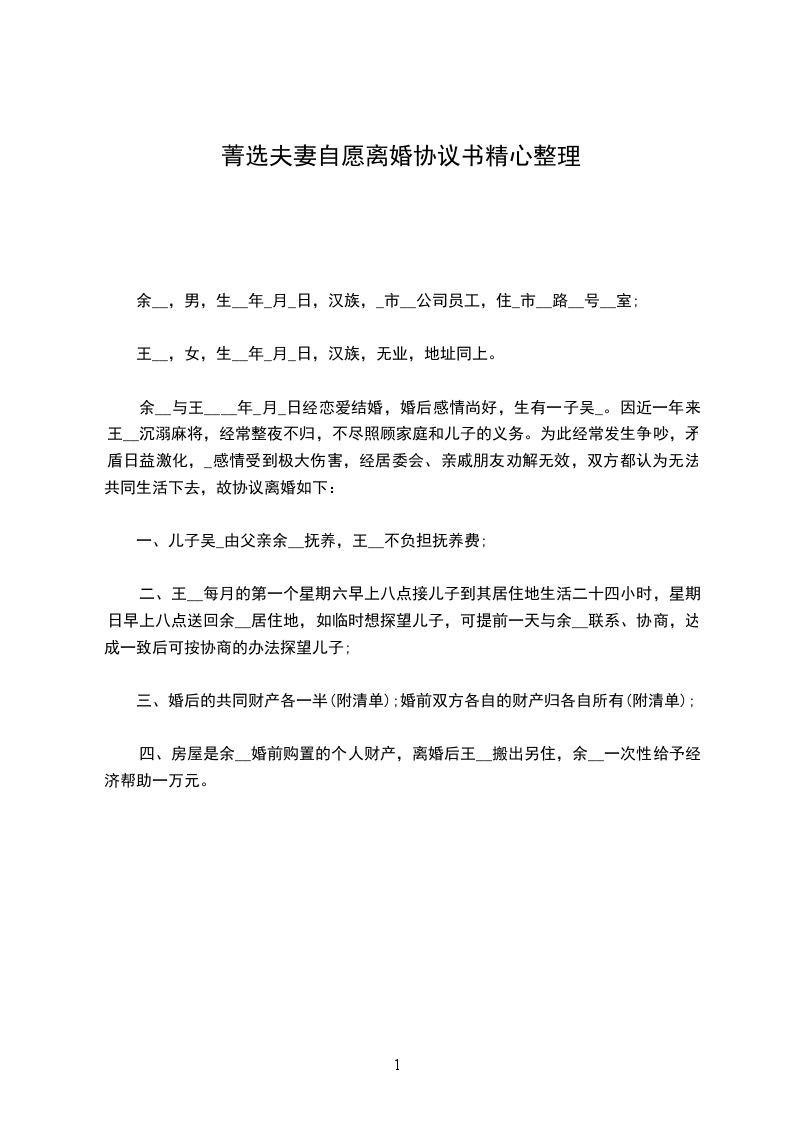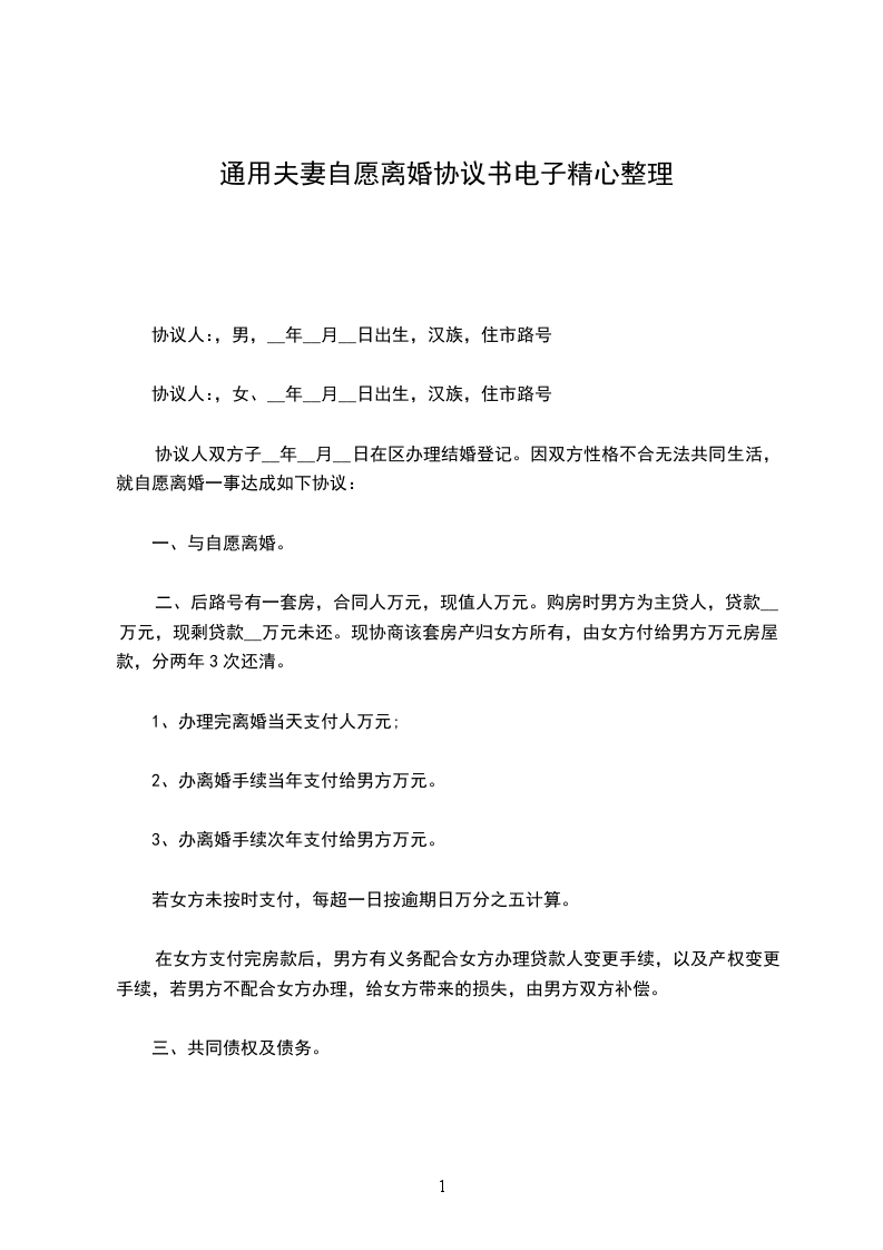 协议人双方子__年__月__日在区办理结婚登记。因双方性格不合无法共同生活,就自愿离婚一事达成如下协议: