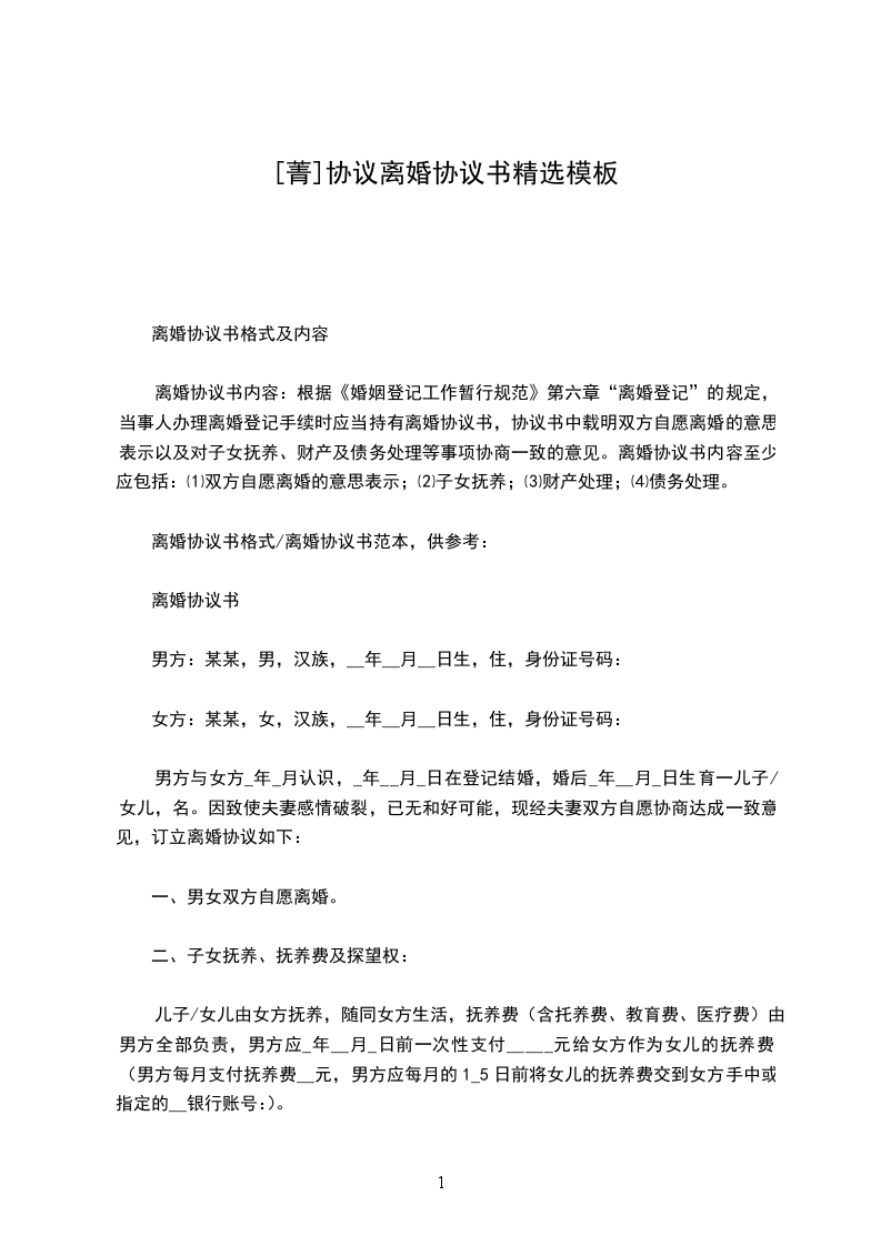 离婚协议书格式/离婚协议书范本,供参考: