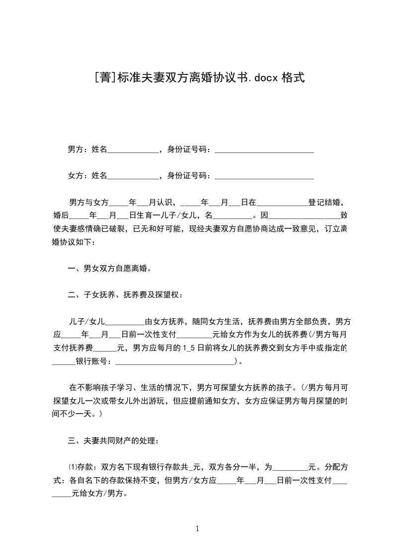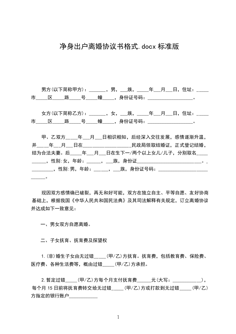 女方:,女,汉族,__年__月__日生,住__市_街号,身份证号码: