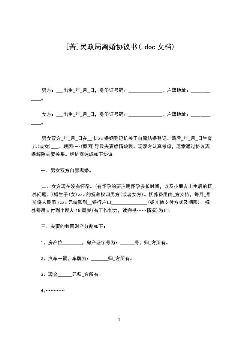 离婚协议人:张某,男,____年____月____日出生,汉族,住____市____路____号。
