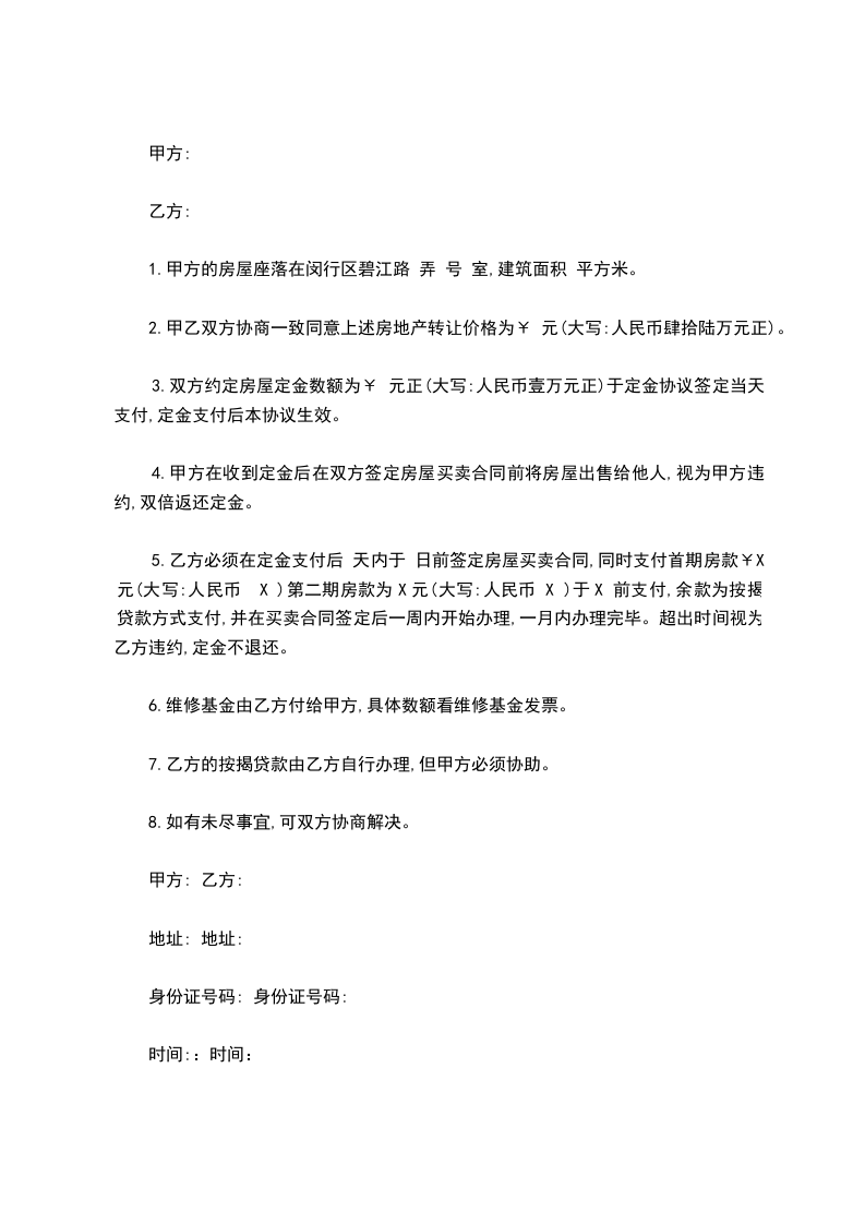 4.甲方在收到定金后在双方签定房屋买卖合同前将房屋出售给他人,视为甲方违约,双倍返还定金。