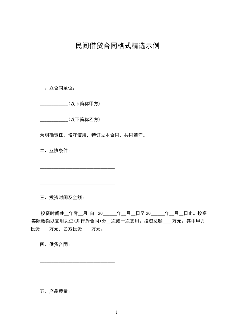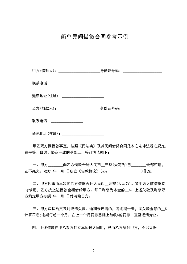 甲乙双方因借款事宜,按照《民法典》及其民间借贷合同范本它法律法规之规定,在平等、自愿、协商一致的基础上,签订协议如下:_________________