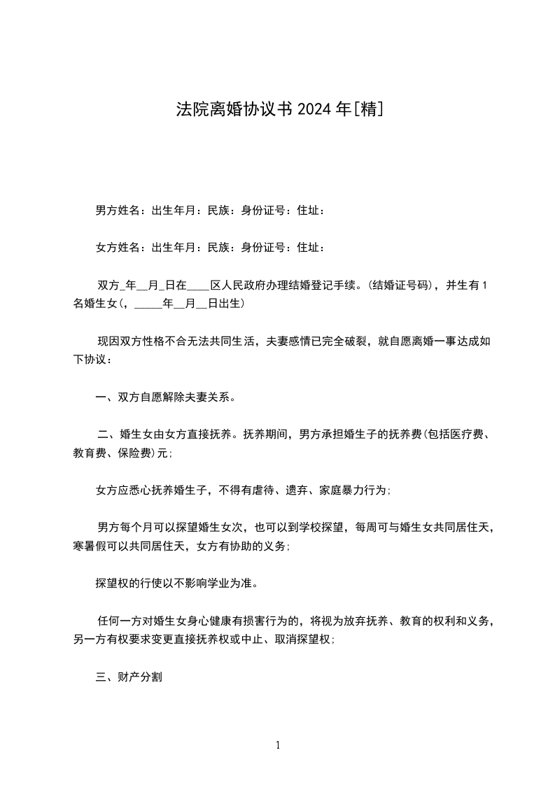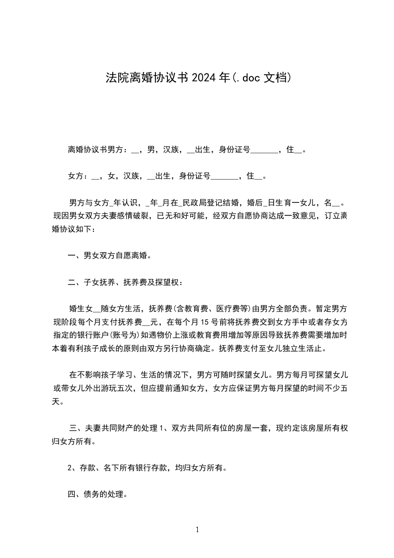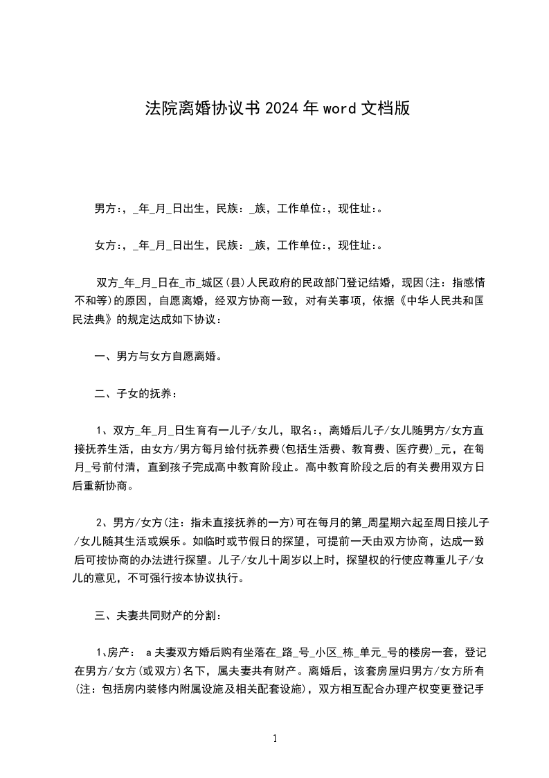 女方:,_年_月_日出生,民族:_族,工作单位:,现住址:。