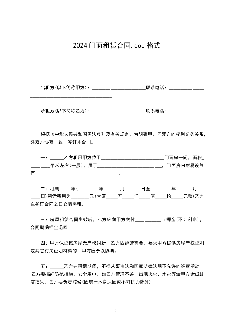 承租方(以下简称乙方):____________________