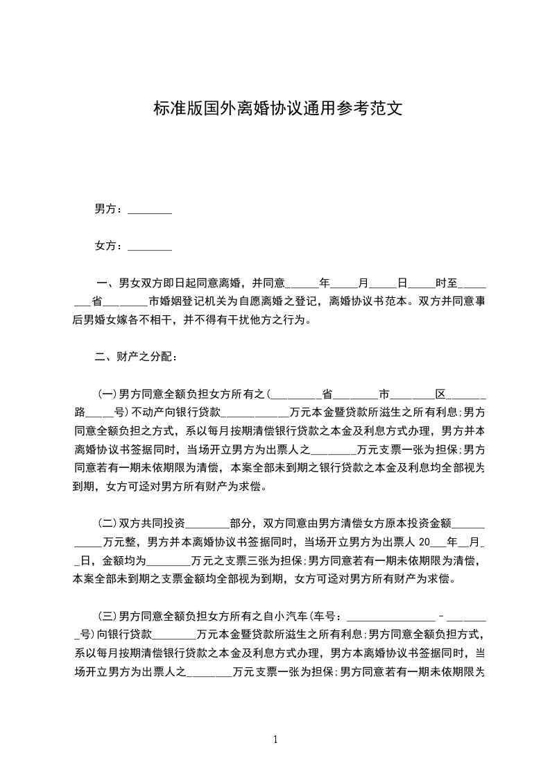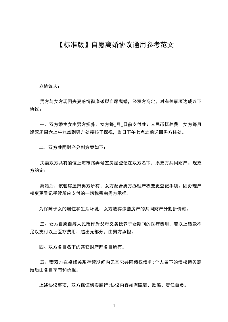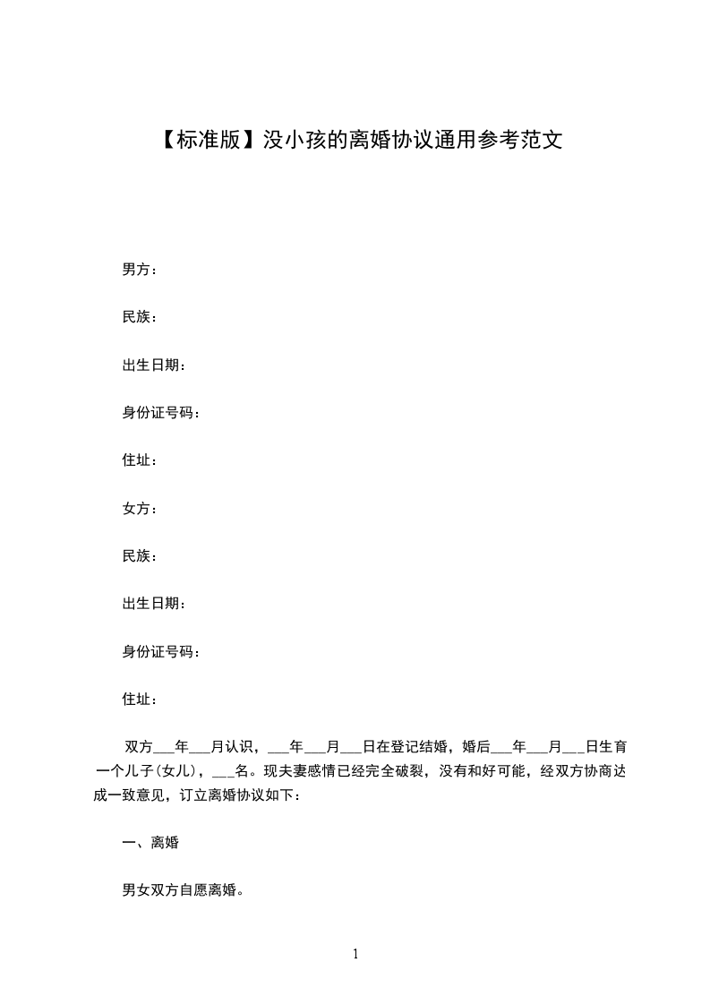 本协议一式三份,男、女双方各执一份,婚姻登记机关存档一份,自婚姻登记机颁发《离婚证》之日起生效。