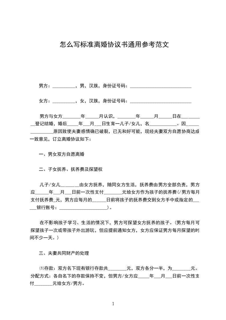 (1)存款:双方名下现有银行存款共____元,双方各分一半,为______元。分配方式:各自名下的存款保持不变,但男方女方应__________年________月________日前一次性支付__________元给女方男方。