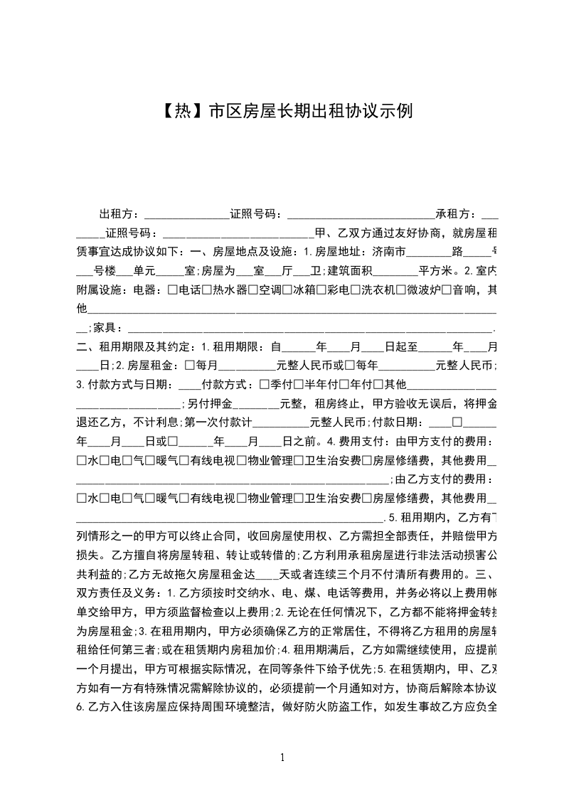 1.房屋地址:济南市________路_____号___号楼___单元_____室;房屋为___室___厅___卫;建筑面积________平方米。