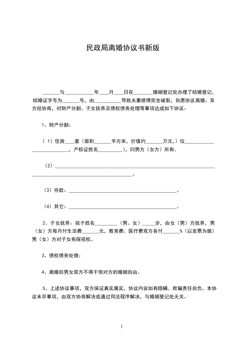 六、本协议书一式三份,男女双方各执一份,婚姻登记机关存档一份。