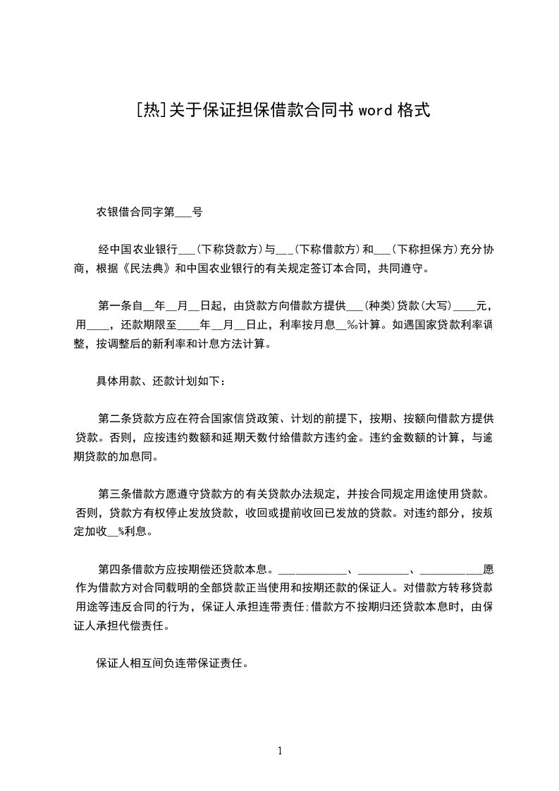 经中国农业银行___(下称贷款方)与___(下称借款方)和___(下称担保方)充分协商,根据《民法典》和中国农业银行的有关规定签订本合同,共同遵守。
