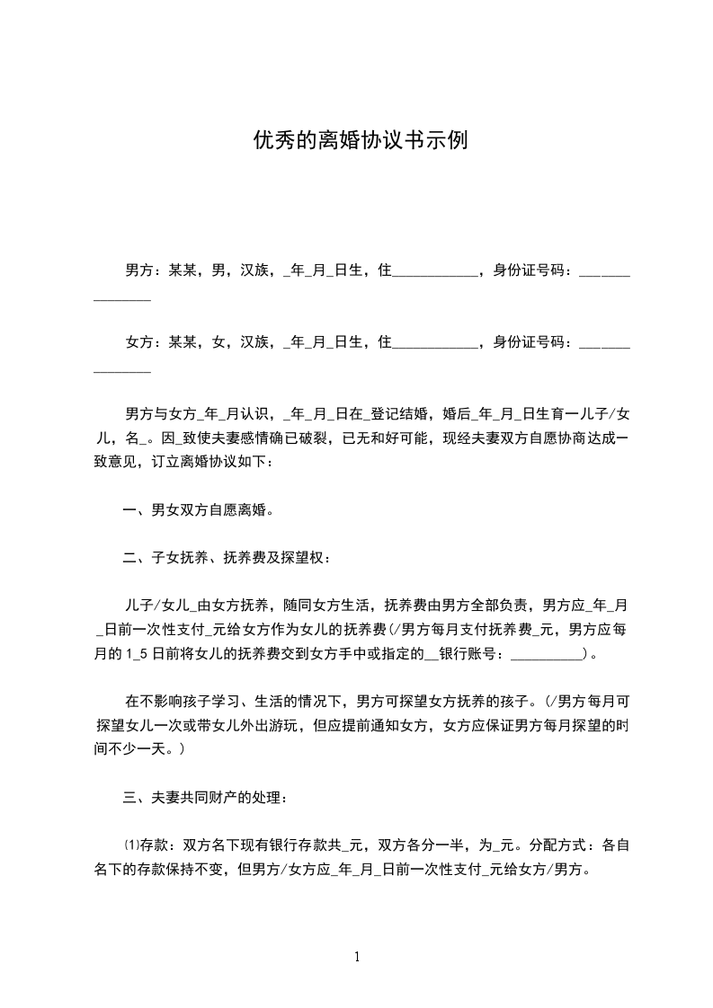 男方与女方_年_月认识,_年_月_日在_登记结婚,婚后_年_月_日生育一儿子/女儿,名_。因_致使夫妻感情确已破裂,已无和好可能,现经夫妻双方自愿协商达成一致意见,订立离婚协议如下:
