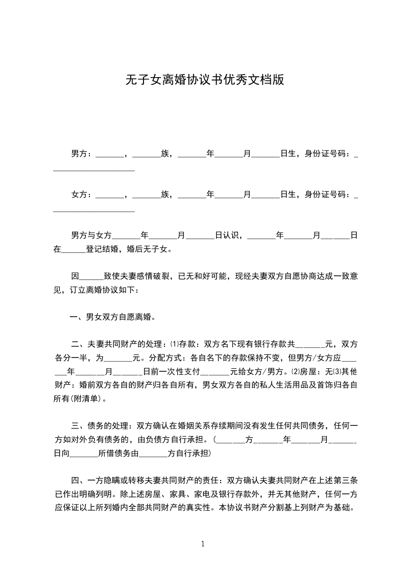 2、男女双方目前均无存款及股权、股票、债券等。